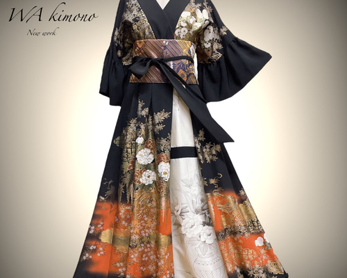 | メーカー | 217 手染め大輔 着物リメイク 黒正絹 ワンピース L〜フリーサイズ 217 |