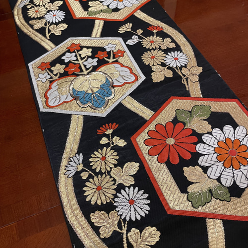 | メーカー | 【1点もの】黒地に扇文様の高級帯テーブルランナー |