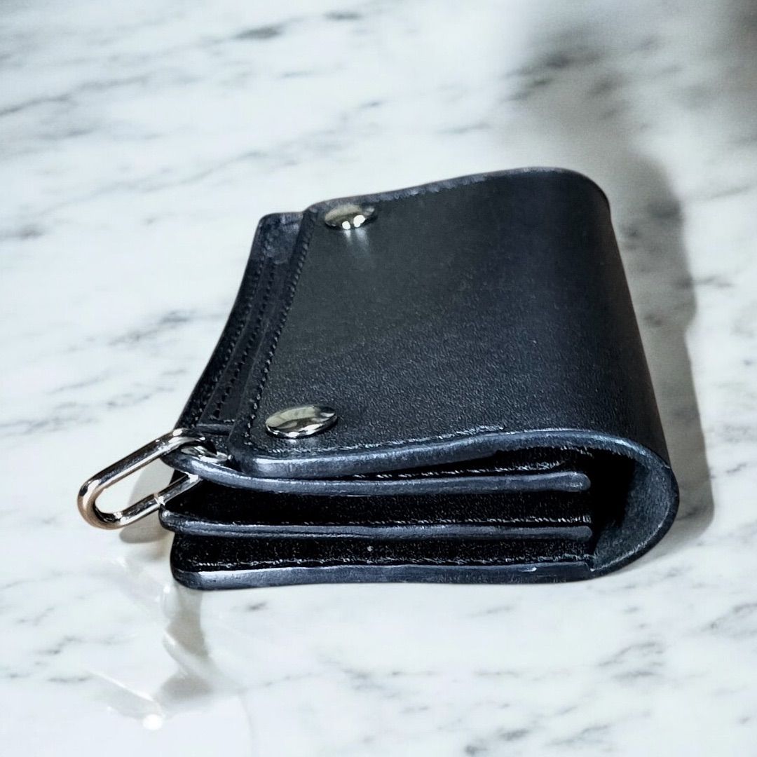 - ファッション小物 > 財布・ケース・小物入れ > ミドル トラッカーウォレット カスタム 栃木レザー サドルレザー 黒 真鍮 受注製作品 栃木レザー オイルレザー 黒 お札を折らないミドル