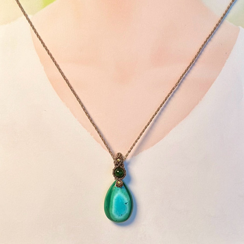 - アクセサリー > ネックレス・ペンダント > 『遥然』クリソコラインマラカイトとダイオプサイトのマクラメペンダントネックレス 遥然』クリソコラインマラカイトとダイオプサイトのマクラメ