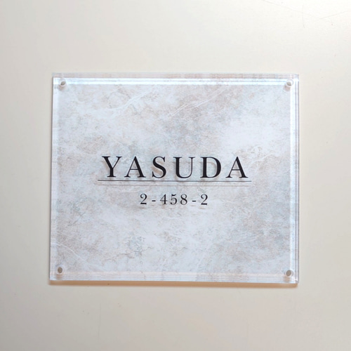 | 商品の特徴 | アクリル表札〘ホワイト・リッチストーン〙*透明アクリル鏡面。アクリル表札〘ホワイト・リッチストーン〙*透明アクリル鏡面。アクリル表札〘ホワイト・リッチストーン〙*透明アクリル鏡面。ご覧いただきありがとうございます。UV印刷専門デザイナー 兼 アクリル表札作家のTackey Sawaと申します。当店商品はお客様のご希望内容により価格が異なるため、現在の価格は仮の設定です。大変恐縮ですが、商品説明の最下段にある〘ご注文にあたって〙をお読みのうえ、必ずご注文前にコメントをいただきたく、よろしくお願いいたします。〘当店のアピール点〙①透明アクリル4辺45度斜めカット鏡面仕上げ 垂直カットや角丸よりも手間をかけた加工 で、高級感溢れるアクリルデザイン②本物か印刷か分からない程の印刷品質 最新・最上位のUV印刷機ならではの 発色の良さを実現③あらゆる印刷デザイン、書体にも対応 掲載している印刷デザイン、書体以外 にも、積極的に対応④サイズは330㎜以内×500㎜以内まで対応⑤両面テープ付 穴開け加工も対応〘表札の厚み〙 5㎜と8㎜からお選びいただきます。 8㎜厚は透明感・高級感・強度が増します。 ★他店との違い★①回数制限なく、無料で電子データを修正②プレゼント包装、発送は安心なメルカリ便③4辺45度斜めカットor垂直カット鏡面仕上げ④薄手強接着の両面テープ付き⑤全て高品質なUV印刷⑥穴開け+ステンレスビス対応⑦入稿データ対応⑧商品ページ掲載以外のフォントも対応 ◎アクリル樹脂について◎ プラスチックの中で最も耐久性に優れ、 透明性を保った素材。 優れた強度と透明性と併せて、外でも 劣化しない耐候性に優れています。〘ご注文にあたって〙 ご購入前に下記①②③を教えてくだ さい。お客様価格をご提示いたします。 ①ご希望のデザイン、文字色 ②表札の縦横サイズ ➂穴開け加工の有無 #看板 #玄関 #ネームプレート85#オーダーメイド #ハンドメイド#アパート #マンション #ポスト#プレート #インテリア小物#名入れ29テイスト...モダン, 和モダン。華やか!高品質!アクリル表札/UV印刷 | 表札マイスターへの「道。【NO5676】アートパネル・ファブリックパネル。ゥため 様 【シール】。世界三大銘木 最高級マホガニー仕様 『スタンドメニューボード』 絵画 彫刻仕上げ。ハローキティ ウェディングドールセット。ミッチー様おまとめ13点。おさつページ 差額分17,000円* 習い事教室向けアクリル表札。みい❥*アッシュベージュタイル背景+ワンちゃんのアクリル表札*UV印刷。こんぶ*ターコイズペイント背景アクリル表札*4辺45度斜めカット*UV印刷。405.❤︎ナチュラルグリーン 結婚式ミールヘーデン ウェルカムスペースまとめ売り | ||