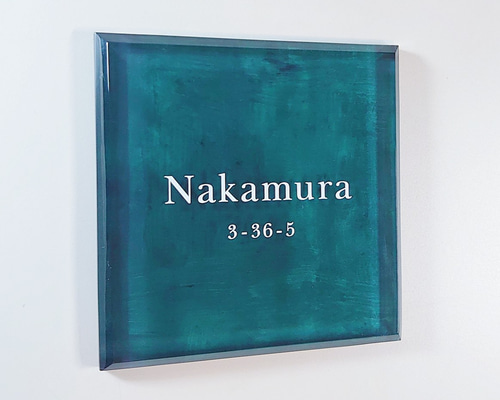 | メーカー | 3ki*ターコイズペイント背景アクリル表札*4辺45度斜めカット*UV印刷 |